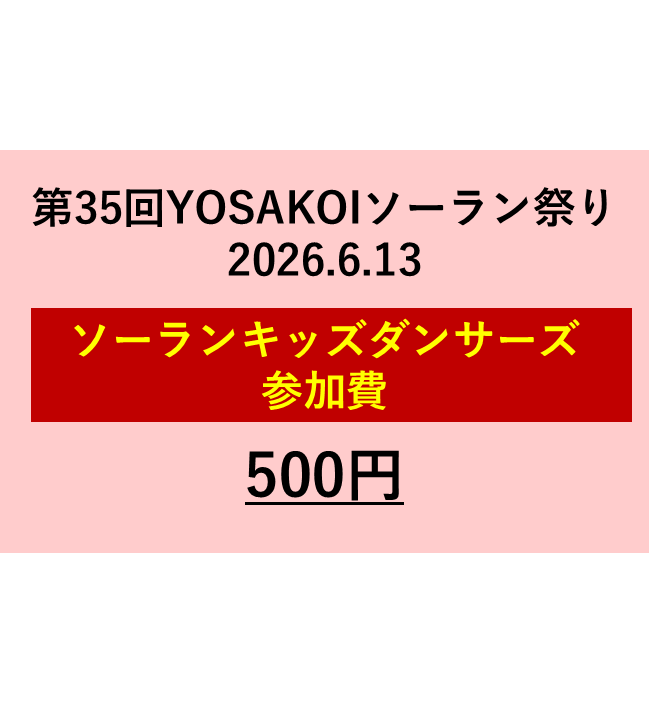 第35回YOSAKOIソーラン祭りにて実施する「ソーランキッズダンサーズ」の参加費です。